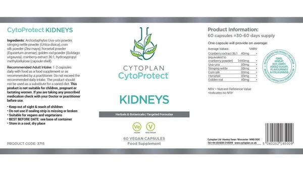CytoProtect® Kidneys toidulisandi taimepõhine koostis sisaldab leesikat, nõgest, maisisiidi pulbrit, põldosja, kuldvitsa ja jõhvikat. Seadusandluse tõttu ei või me üksikasjalikult kirjutada ürtidest ja nende kasutusvõimalustest, kuid selle toidulisandi taimse päritoluga koostisosadel on pikk traditsiooniline kasutamise ajalugu.