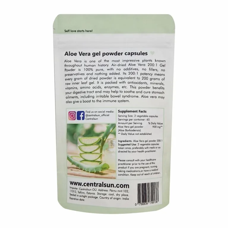 HARILIKU AALOE GEELI PULBER, 120 kapslit. Centralsun Aloe Vera