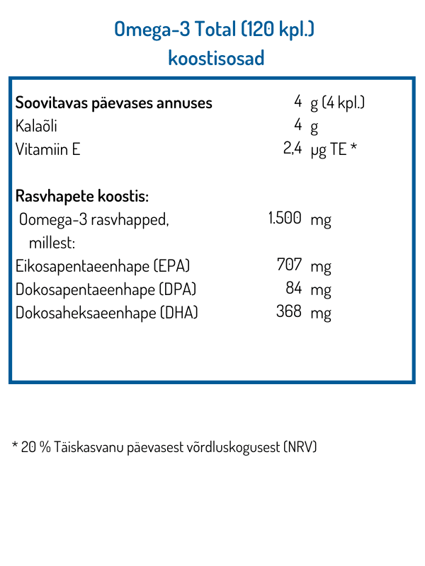 ✓ 1500 mg Oomega-3 päevas (4 kapslit)